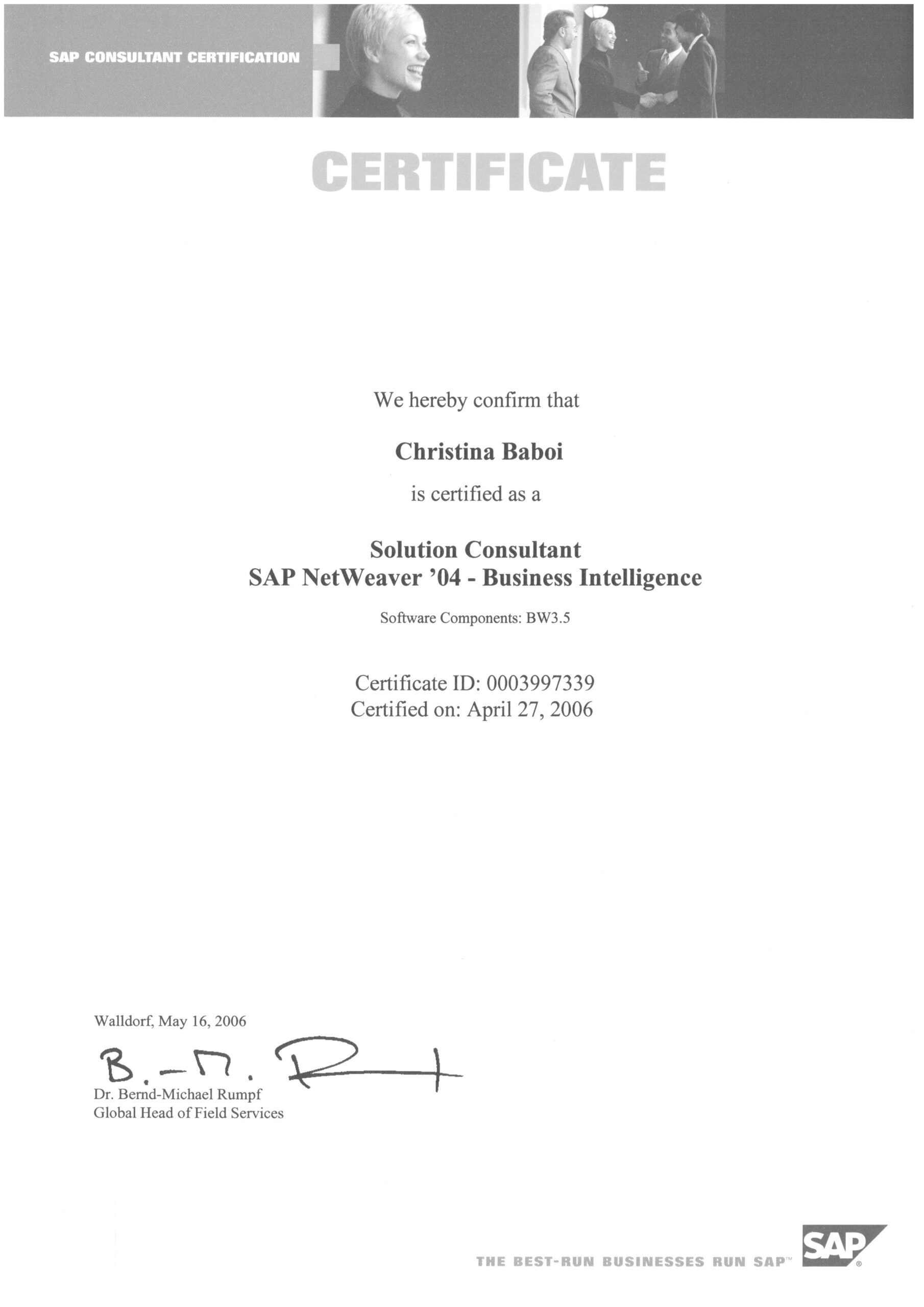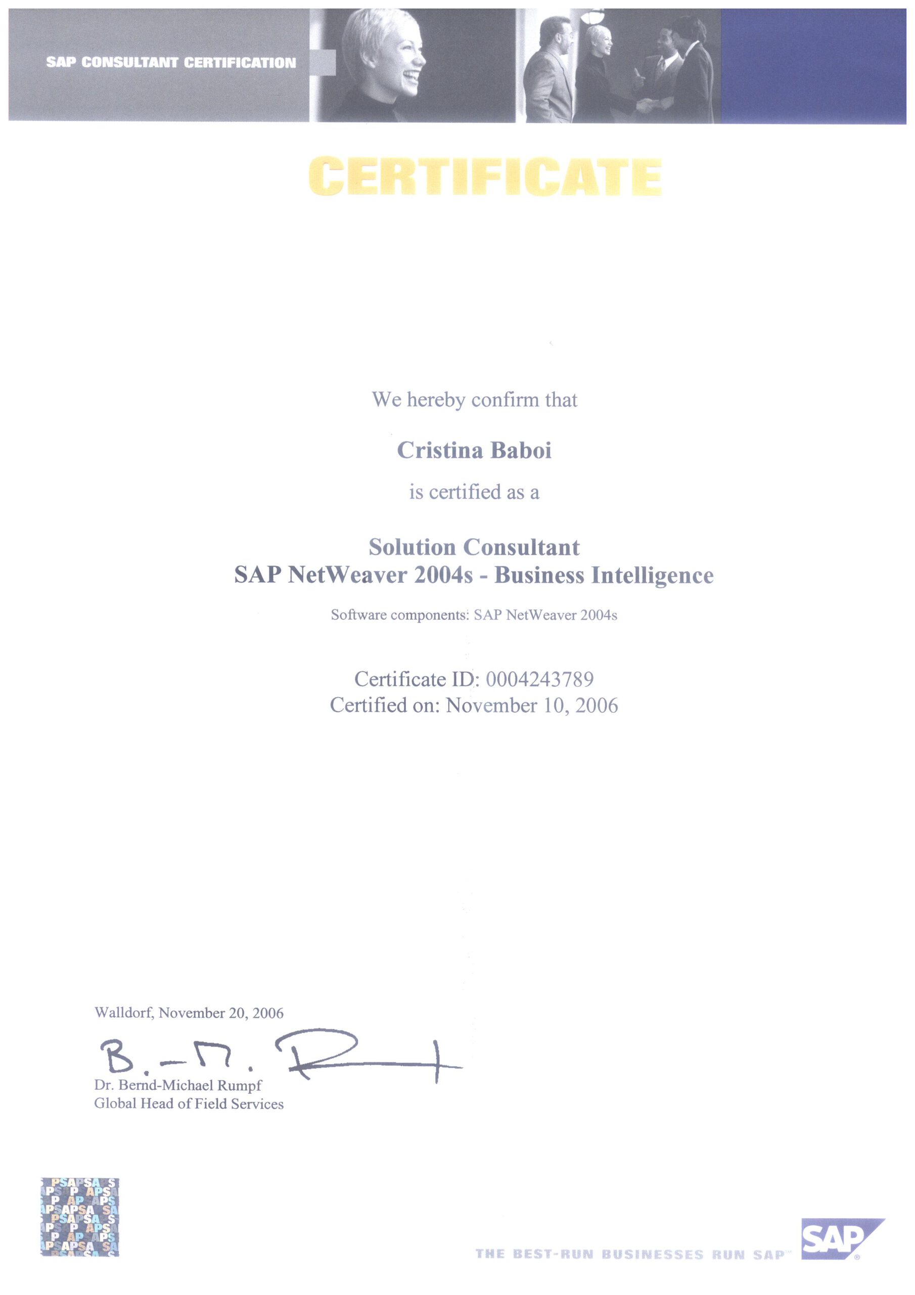 - 2006 - BW 7.0 - Solution Consultant SAP NetWeaver 2004s - Business Intelligence